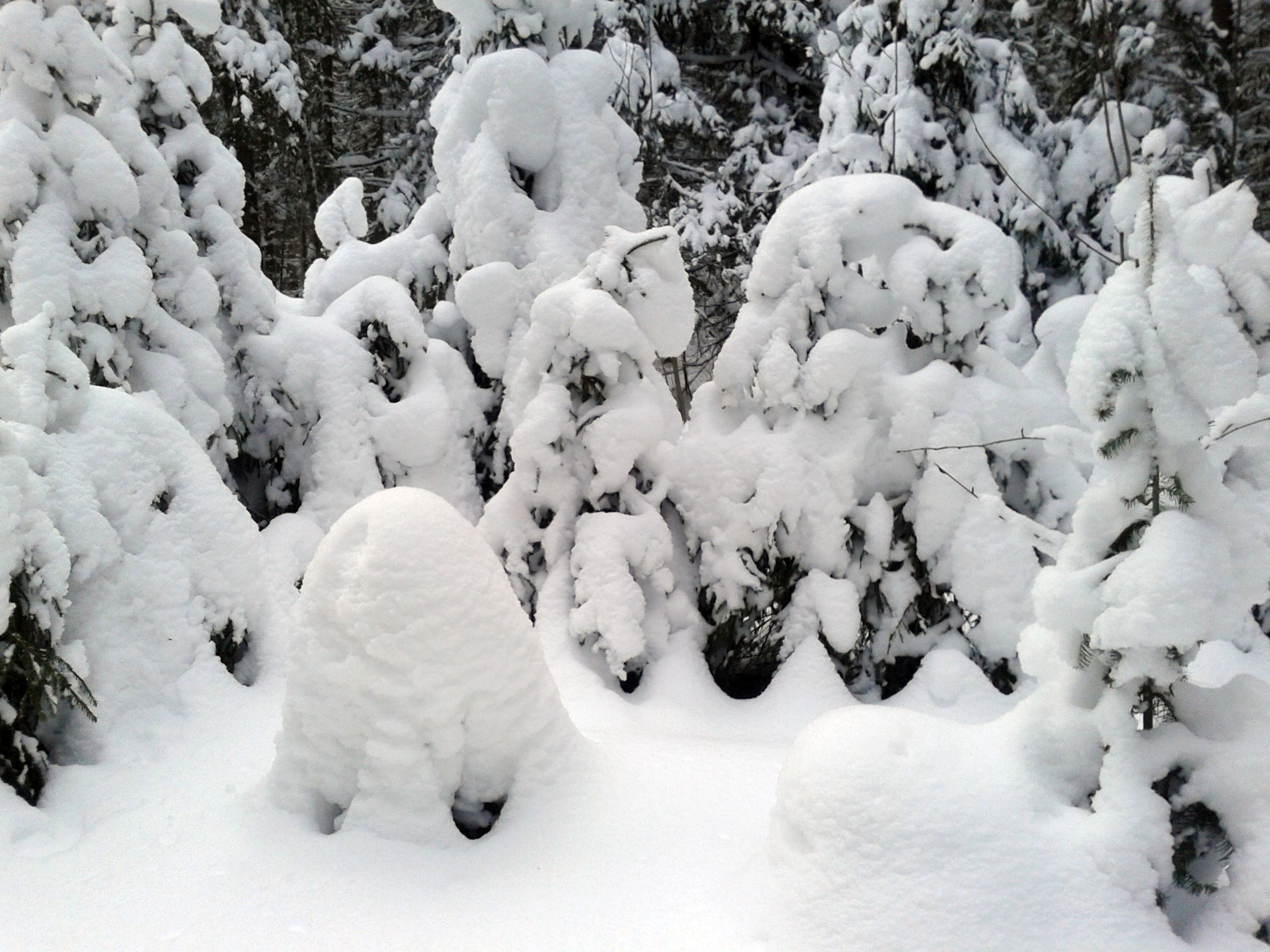 Люблю ходить на лыжах по лесу. В этом сезоне долго не было снега и вдруг — случился «ливневый снегопад» — выпало за одну ночь.