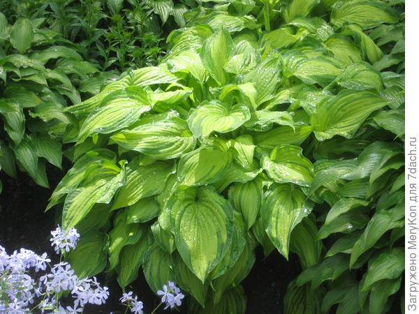 Вот, например, голубая, очень она мне нравится эта хоста. Куст компактный, шириной см 70, лист не крупный, густого зелено-голубого окраса.