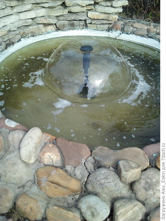 Пошёл другим путём: поскольку для фонтана у меня стоял погружной насос Кама, имеющий специальный отвод для водопадика, задействовал его. Путём манипуляций с краниками на насосе отрегулировал давление на фонтан и водопадик, но всё таки и этот насос недостаточно производителен для одновременной подачи воды и на фонтан и водопад. Но, что имеем, то имеем, буду искать другой насос.