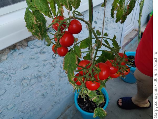 Чтобы образовалось грибное заболевание необходима капельно — жидкая влага. Если у Вас куст на балконе сухой, то болезней грибных в принципе быть не может. Большинства проблем от того, что томаты растить в малом объеме не просто.