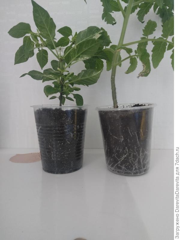 Пока стоят плотно друг к другу всё нормально, затеняют друг друга, а вот когда начинаю раздвигать, выносить в теплицу, то приходится оборачивать бумажными салфетками, что бы солнышком не припекло корешки.
