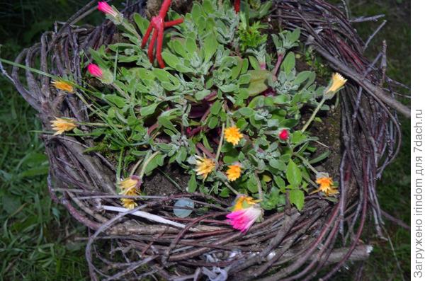 "Мезембриантемум (от латинского Mesembryanthemum) представляет собой род двухлетних либо однолетних суккулентов, относящихся к семейству Аизовые". Южноафриканское растение, у нас не зимует. Но можно занести на зиму домой.