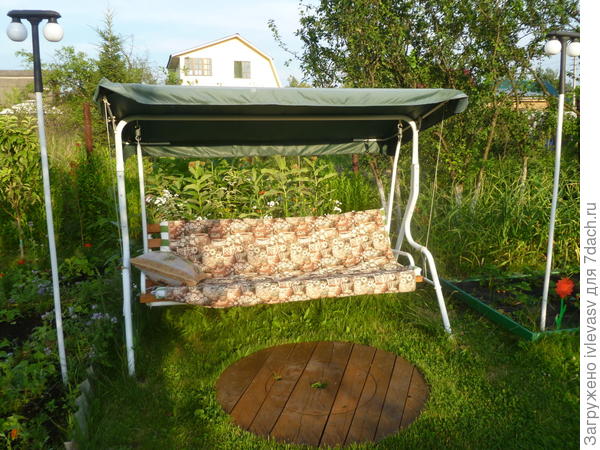 Зина, все дело в том, что качели старые и материал на них порвался. Муж заменил его на деревянные бруски. Вот и получились новые.Теперь долго простоят.