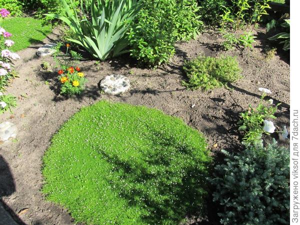 Стоит огораживать все, вплоть до цветников и кустарников. Грядки — бревнами и досками, а цветники — камнями. Иногда они как-то сами собой превращаются в рокарии. Все, что растет снаружи от бордюров, вас волновать не должно: берёте косилку и подкашиваете. И тогда вы увидите, как мало остаётся почвы, требующей трудоемкой обработки и ухода!