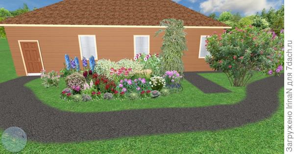 Размер цветника 2,5 м * 5 м, он овальной формы с плавными изгибами. С левого края есть куст спиреи шаровидной формы, по краю справа растёт рябина невежинская, куст почти пирамидальной формы высотой метра четыре. Место для цветника в первой половине дня находится в тени, а во второй — солнце до заката. Почвы лёгкие питательные, хорошо дренированные. Цветник предполагаю сделать в розово-малиновых тонах, основной цвет — розовый.