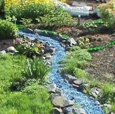 купила такие камушки на вес, цену уже не помню, они покрашены по какой то технологии обжига, вот с 2007 года лежат и ничего им от атмосферных осадков не делается, а под ручьём замаскирован дренаж, сделали отмостку вокруг дома ну и отвели воду талую и дождевую,