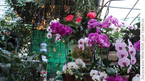 Мои орхидеи в осенне-зимний период стоят на юго-западном окне и прекрасно себя чувствуют, но в начале весны, когда начинает пригревать солнце, все они переселяются на стол перед окном. Тюль делает свет рассеянным, и орхидеям вполне комфортно в таких условиях.