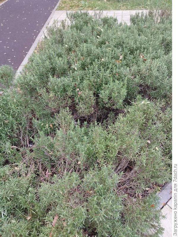 Да, это розмарин лекарственный (Rosmarinus officinalis L.), семейство Яснотковые (Lamiaceae), но, согласно современной систематике, — это шалфей розмариновый (Salvia rosmarinus Spenn.). Если вы еще будете проходить мимо этого кустарника, то наклонитесь к нему и потрите листик. Вы услышите своеобразный аромат розмарина, который в следующий раз вам подскажет, что это он. Еще смотрите на сайте: Бордюры из пряных трав - полезная красота