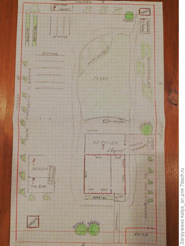 Ну а пока расскажу о своей идее. Центр композиции участка – жилой дом с большой верандой. Сразу скажу, что пристраивать веранду нужно на отдельном от дома фундаменте, на самостоятельном, что позволит избежать деформации двух строений в будущем при сезонных температурных перепадах.