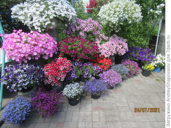 'Валентина' ( махровая)Петунии сеяла 20 и 28 февраля, пикировала в рассадные кассеты, затем, по мере разрастания, в 500 мл горшочки, 1, 2, 3-литровые. Мощные «Тайдалы» — в 5-литровые, до высадки на постоянное место.
