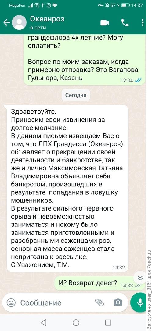 Конечно обидно, я начинающий «розовод» и это был мой первый заказ, не хотелось бы начинать с неудачного опыта. Я пыталась созвониться с Максименковой, но никто не ответил, все сайты заблокированы. Конечно трудно пережить такую беду, если конечно это случилось на самом деле. Хочется, конечно, посочувствовать Татьяне, но ей как-то нужно выходить с этого состояния и начинать сотрудничать с заказчиками, хотя бы обнадежить какими-то сроками возврата денег. А нам придется набрать терпения и надеяться на положительное решение нашего вопроса.