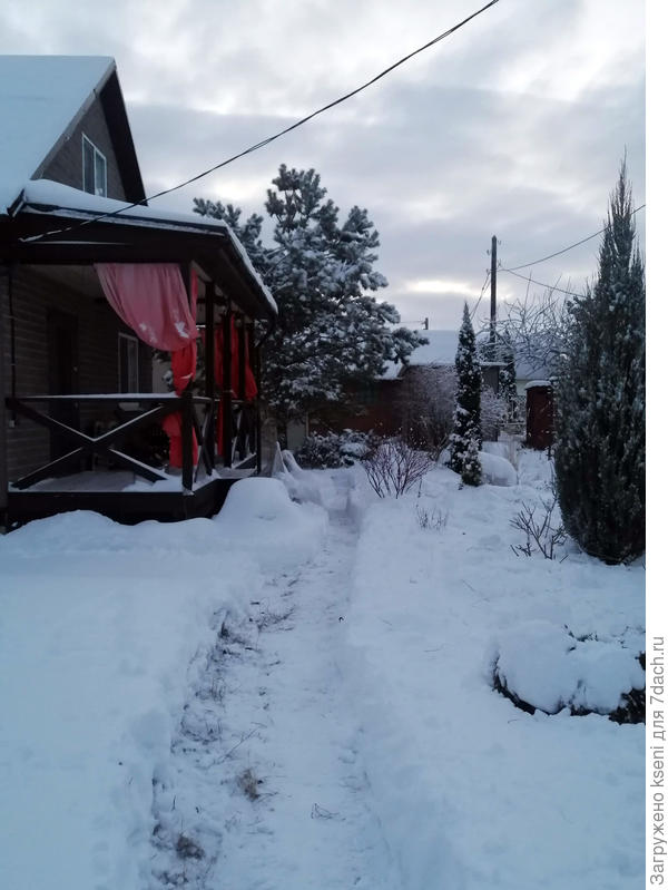 А старый добрый колодец, символ дачной жизни, сегодня особенно торжественен — его крыша покрыта такой идеальной снежной шапкой, что кажется, вот-вот оттуда появится Дед Мороз со своей волшебной сумкой.