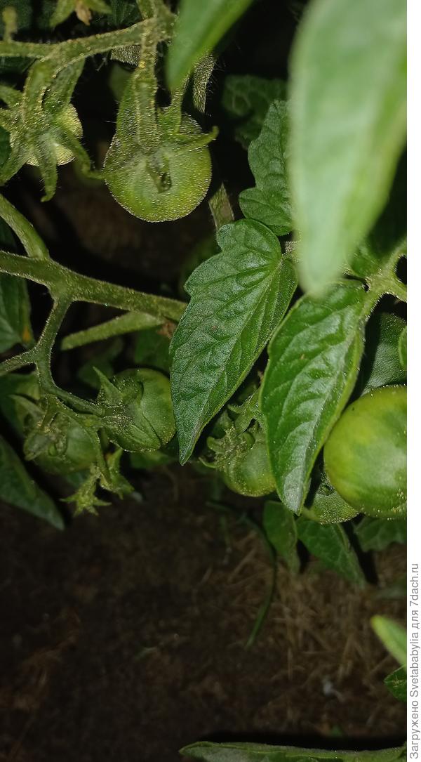 На данный момент два куста я порушила, урожай созрел, новых кистей нет, а я теперь буду дольше отсутствовать, чем бывать дома. Еще у одного оставила большой пасынок на стебле. Еще один обрезала, оставив прикорневой пасынок. Ну а еще один плодоносит, и уже вчера с прикорневого пасынка сняла первую помидорку.