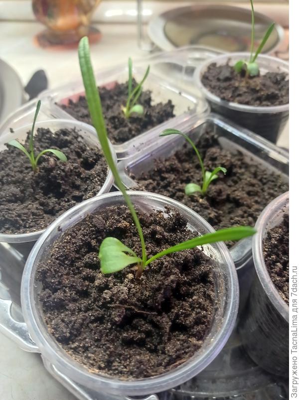 Вербена тоже не особо радует. Из 6-8 взошедших выжило только три. Некоторые так и не смогли сбросить семечко.
