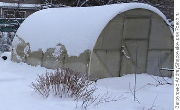 Не стала и прорываться к теплице, мне показалось, что снега на ней не так уж и много… Но сейчас, глядя на фото, понимаю, что снега было больше, чем казалось… И если бы я его тогда сбросила, то, возможно бы, теплица сейчас стояла бы как ни в чем не бывало. И от этого становится еще обидней...