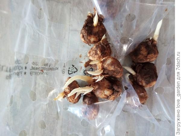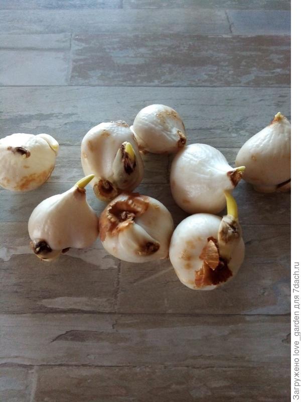 Здравствуйте. Подскажите, пожалуйста, как поступить? Получила из интернет-магазина луковицы с большими ростками. Не хочу делать выгонку в горшках. Как сохранить до посадки в землю? Сейчас замочила в фунгициде.