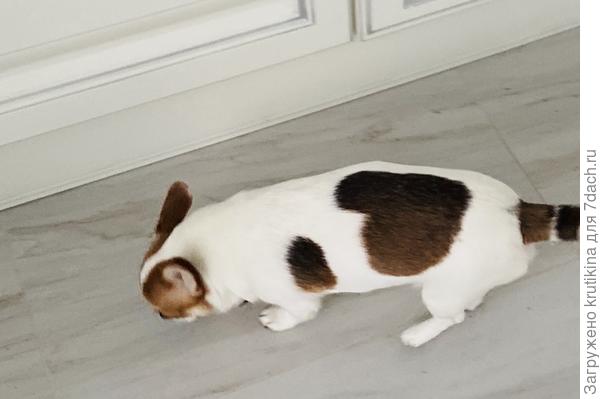 Когда привезла щенка домой, я боялась что она ночью будет скулить и проситься обратно. Но на удивление, Ника вела себя в квартире так, как будто жила здесь всю жизнь и никаких жалобных писков не было.