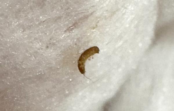 Попробуйте рассмотреть личинку через увеличительное стекло (можно и сделать снимок макро смартфоном).