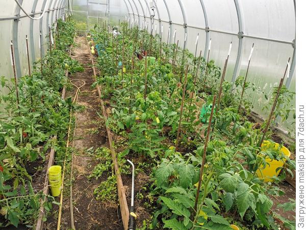 Почему в теплице не получишь такой большой урожай? В последние два года практически не применяем минеральные удобрения, а в основном конский перегной сухой под весеннюю перекопку. Правда травы много, но пАмидоров еще больше.