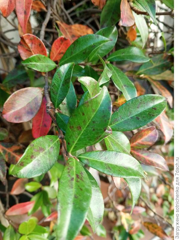 Зимой у нас на ЮБК листья иногда приобретают бордовый оттенок.