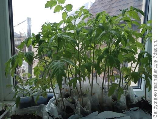 Марина, вашей рассаде не хватает досветки в период ее выращивания в квартире, тогда она не будет такой вытянутой. Я свои ращу третий год с досветкой, высаживаю рано в неотапливаемую ПК теплицу. В наших регионах нужно стараться в весенний период хорошо укоренить рассаду и постараться до пекла сформировать как можно больше завязавшихся кистей.