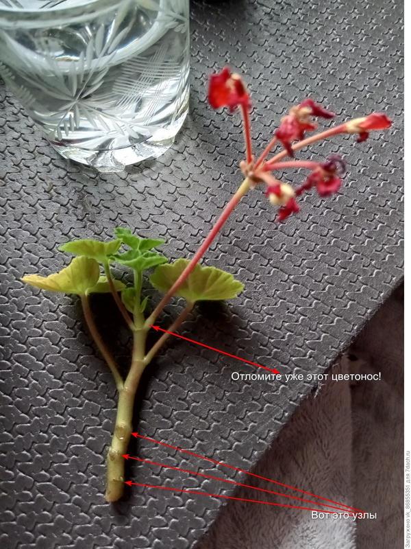 Есть отросток пеларгонии с цветоносом. Как его правильно укоренить?