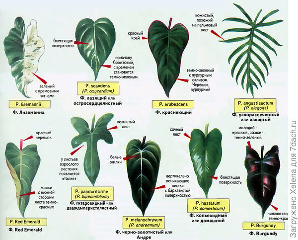 низкий — вероятно, разновидность филодендрона.
