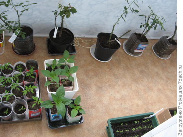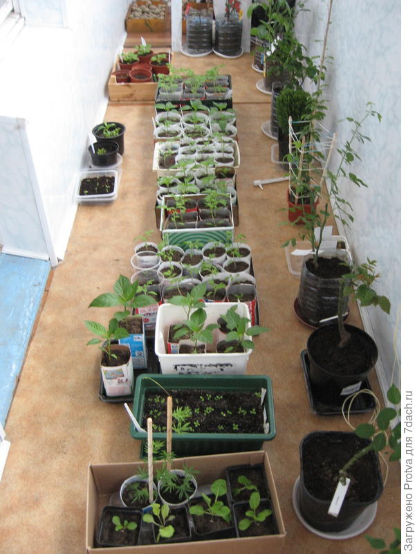 Фото рассады на балконе сделано 06.04.2016 года. Видны посаженные в землю розы у которых не обламывались ростки. Все эти розы и поныне в добром здравии, кроме двух дальних.