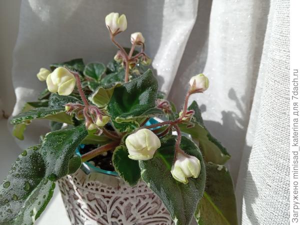 К середине марта этого года стали появляться бутоны, и сейчас она активно цветет. Пересаживать буду после того, как фиалка отцветет.
