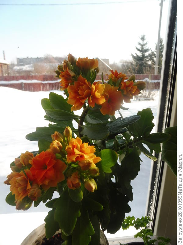 Узнала только, что он из рода Каланхоэ. Вот только какой из разновидностей каланхоэ, я, увы, не знаю. Знаю, что декоративный. Далек от лекарственных(?). По цветению больше похож на каланхоэ 'Розалина'. Но не факт. Еще этот подвид каланхоэ называют долго цветущим. Он рано зацветает, и цветение продолжается довольно-таки длительное время. В моем случае цветет уже три месяца. Что делает этот цветок еще привлекательнее… этакий кустик маленьких нежных цветочков, напоминающих миниатюрные розочки в обрамлении изумрудно- зеленых, овальных, немного зубчатых по краям листиков. Мама увидела у соседа на окошке такую красоту. Принесла в стаканчике росточек. Неделю он у нас стоял в воде, потом посадили в плошку, как и положено, с корешочком. И все. Растет себе потихоньку в плошке. Я как-то не верила, что зацветет. Так рано...