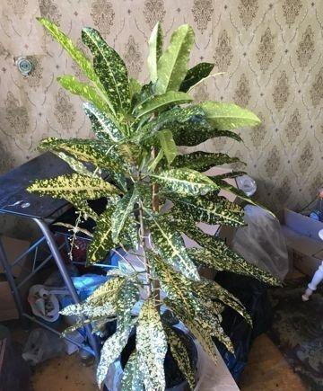 Кротон (на фото) возраста около 1,5 лет. В течение лета много высыхали и отпадали листья. Новые также растут, выглядят в целом неплохо, но смущает один из стеблей, на котором совсем все листья отсохли.