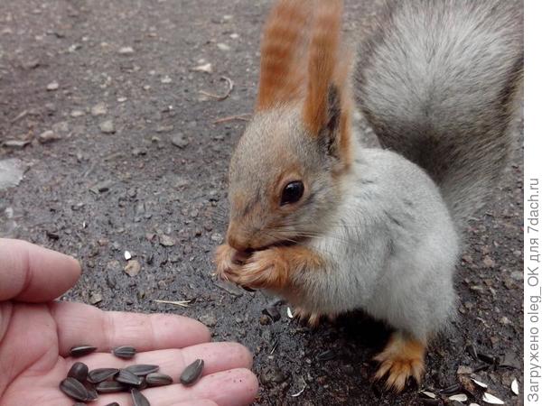 Удивительно смелая белочка!