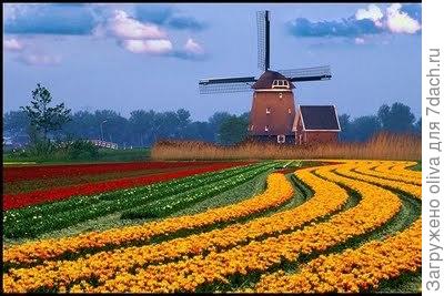 Эти бескрайние поля ярких разноцветных тюльпанов радуют взгляд. В Голландии есть парк Кёйкенхоф, который называют не иначе как цветочное королевство. Каждый год на выставке цветов можно полюбоваться шикарнейшими цветочными композициями, познакомиться с новыми сортами, выведенными голландскими учёными – селекционерами. Площадь цветочных посадок занимает одну пятую территории страны! Поэтому жизнь жителей в этой стране проходит среди яркой разнообразной красоты.