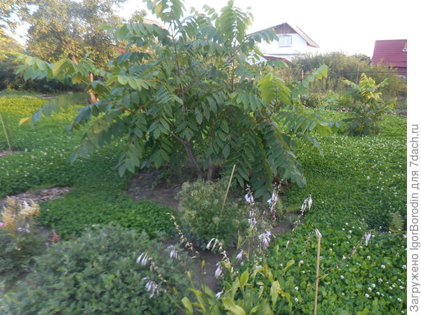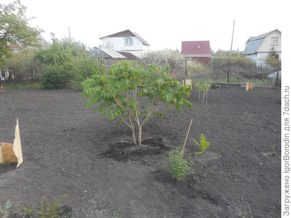 Сейчас у меня 10 деревьев маньчжурского ореха и 14 грецкого ореха, несколько саженцев я подарила друзьям. Деревья должны вырасти крупными, поэтому на постоянное место я их высадила на расстоянии до 10 метров по периметру участка. Один экземпляр Маньчжурского ореха растет в центре участка и служит отличным защитником от солнца в жару и прекрасным фоном для деревенского участка под детскую площадку, дождь под кроной дерева не страшен … орехи выросли невысокими, пока высота около 6-7 метров в среднем, но если вам позволяет площадь на участке — рекомендую, не пожалеете, тем более сейчас можно без проблем приобрести саженцы орехов и не только маньчжурского и грецкого, но и лещины, пекана и т.д.