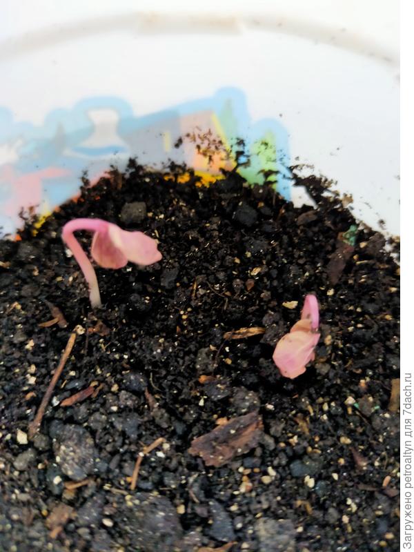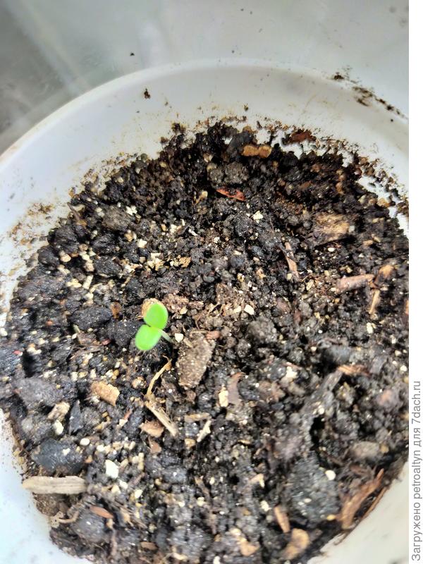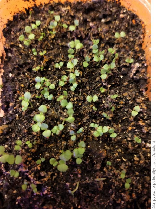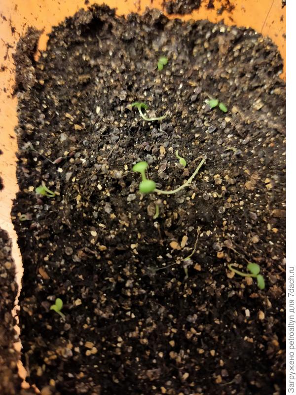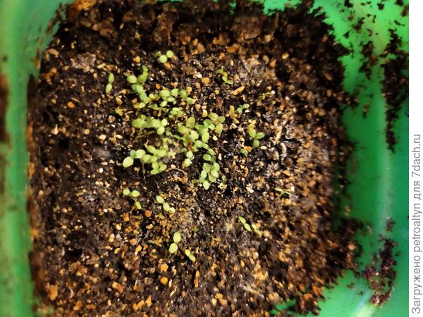 Самые первые ростки. Остальные гораздо меньше, растут еще в трех плошках