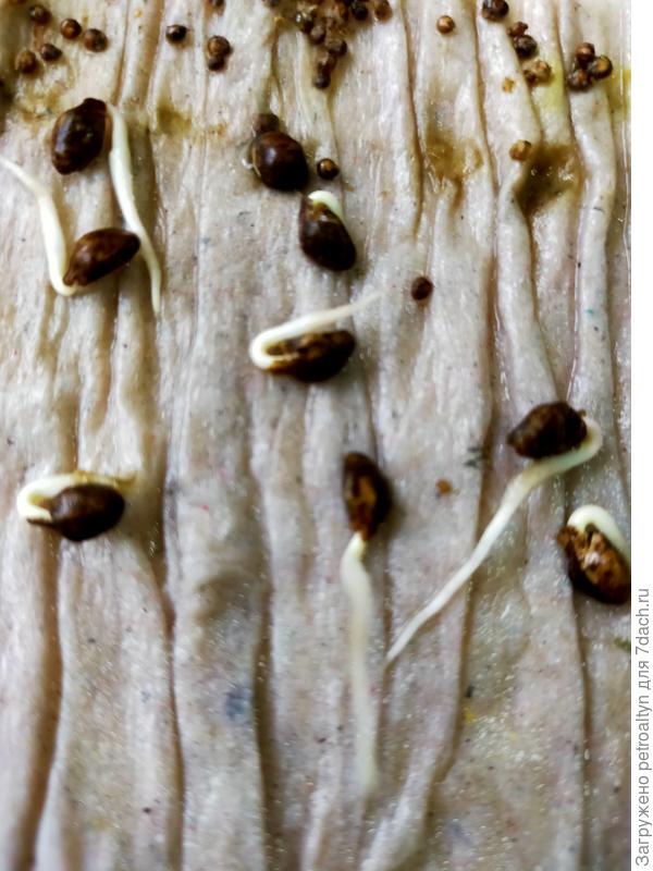 Завернула в улитку 15 марта, в обед. Утром (16-го) не утерпела, проверила и поразилась — дружное прорастание менее чем за сутки!
