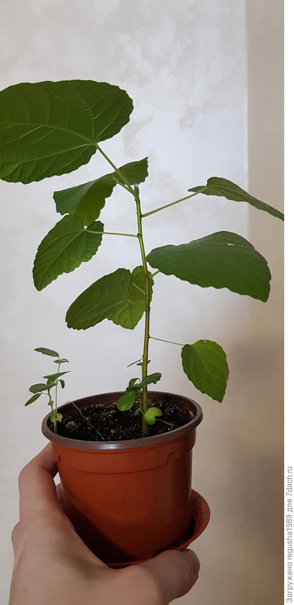 Здравствуйте. Посадили с сыном весной гибискус. Выросло два растения. Листочки только сверху. Отцвели и дали какой-то странный плод (или что это — не пойму). Стоять прямо им тяжело. Что делать?
