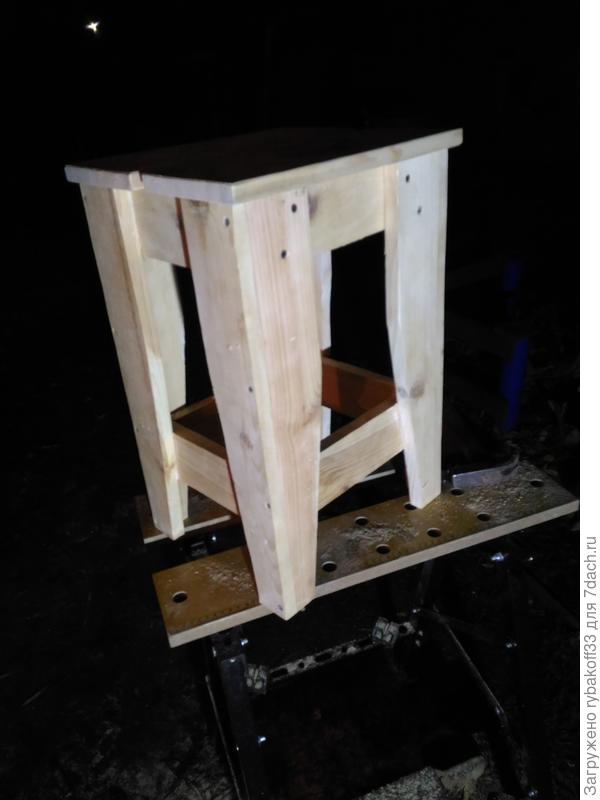На даче есть небольшая мастерская, но вот отсутствовала в ней мебель, конкретно не на чем было посидеть. Решил я исправить данный недостаток и за вечер смастерил простенький табурет.