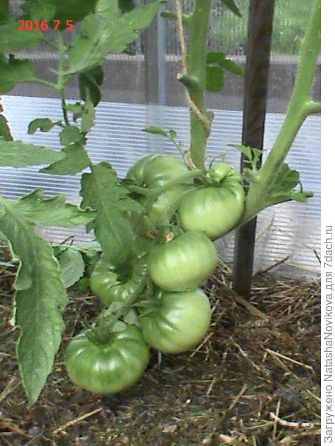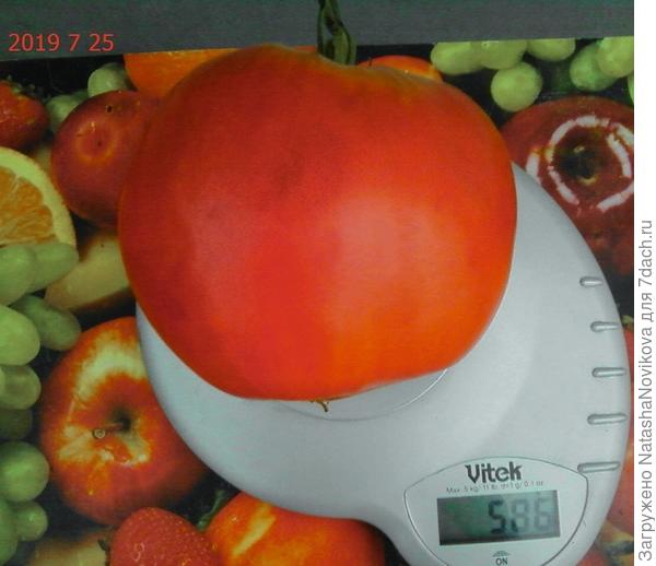 Эти томаты приносят плоды массой в среднем 250-350 г (самые крупные — до 500 г), которые не мельчают от первой кисти до последней.