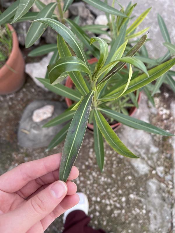 Здравствуйте! У олеандра точки на листьях. Помогите! Что за болезнь и чем лечить? Крым.