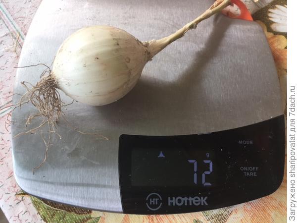 Хотя пробные экземпляры обнадеживают если не массой, то хорошим полуострым салатным вкусом. Пробный экземпляр лука 'Неман': для севка в полтора раза крупнее, а до заявленной массы луковицы за один год не дотягивает наполовину.