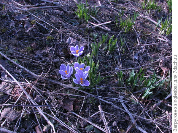 Здравствуйте. Подскажите, пожалуйста, что за растение. Сфотографировано середина апреля в поле у леса. Ленинградская область. В продолжении темы 7dach.ru/singlesbar/pomogite-opredelit-nazvanie-rasteniya_604-220704.html#comment927163 — похоже несколько растений вместе растут: крокусы (?) которые расцвели и имеют листики с полосой, растение с тонкими листиками без полосы (?) и растение с толстыми листиками (?). загружаю в трёх отдельных сообщениях. Крокусы?