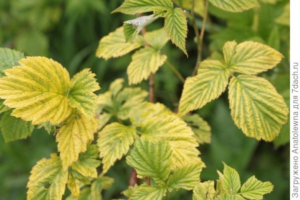 Можно внести удобрения, содержащие азот, торф. А если хлороз у вас инфекционный, то придётся вырезать те веточки, на которых поражённые листья. Весной, ещё до того, как почки начнут распускаться, надо будет опрыскивать малину раствором нитрафена.
