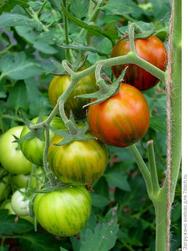 Размер растения. В описании сказано, что растение индетерминантное — у меня высота томатов больше 2 м, пришлось подрезать макушку, как только доросли до верха. Соответствует.