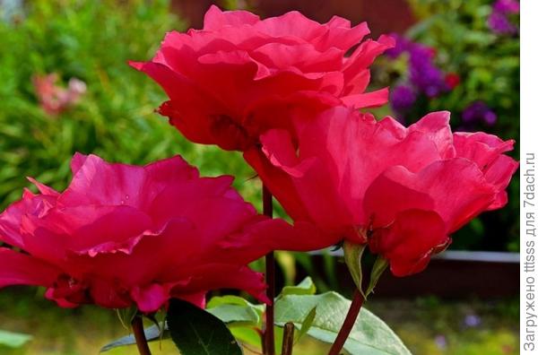 Я обожаю эту розу за её пронзительную красоту, царственное великолепие, необычайный малиновый окрас лепестков, за блеск её тёмно-зелёной листвы. А ещё её люблю за то настроение, которое она мне дарит каждый год в конце июля в день моего рождения, когда я выхожу утром в сад, а бутоны роз смотрят на меня… Честно говоря, я их никогда не срезаю. Цветы — ведь они живые...