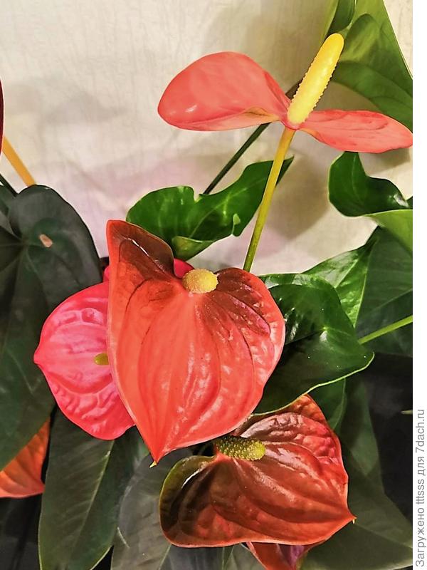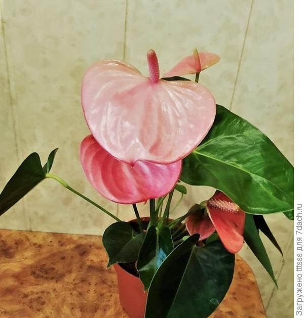 Через некоторое время сын женился, и в один прекрасный момент я отдала антуриум в семью сына, на попечение его жены, которая оказалась заядлой любительницей комнатных цветов. Она не только приняла цветок к себе в коллекцию, но и пополнила её новыми экземплярами.