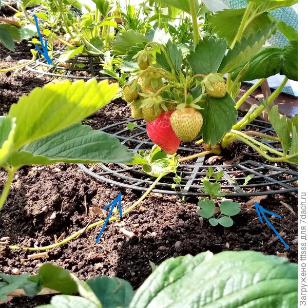Однако, если год урожайный, невозможно обойтись без вспомогательных средств. На фотографии ниже синими стрелочками я указала специальные держатели для ягод.