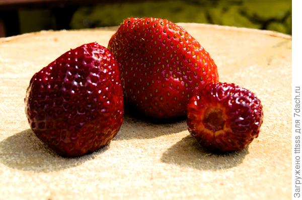 Ягоды отличаются сладостью и насыщенным клубничным ароматом, имеют тёмно-красный цвет и блестящую сердцевидную форму. Мякоть нежная, сочная, но достаточно плотная, чтобы хорошо переносить транспортировку.