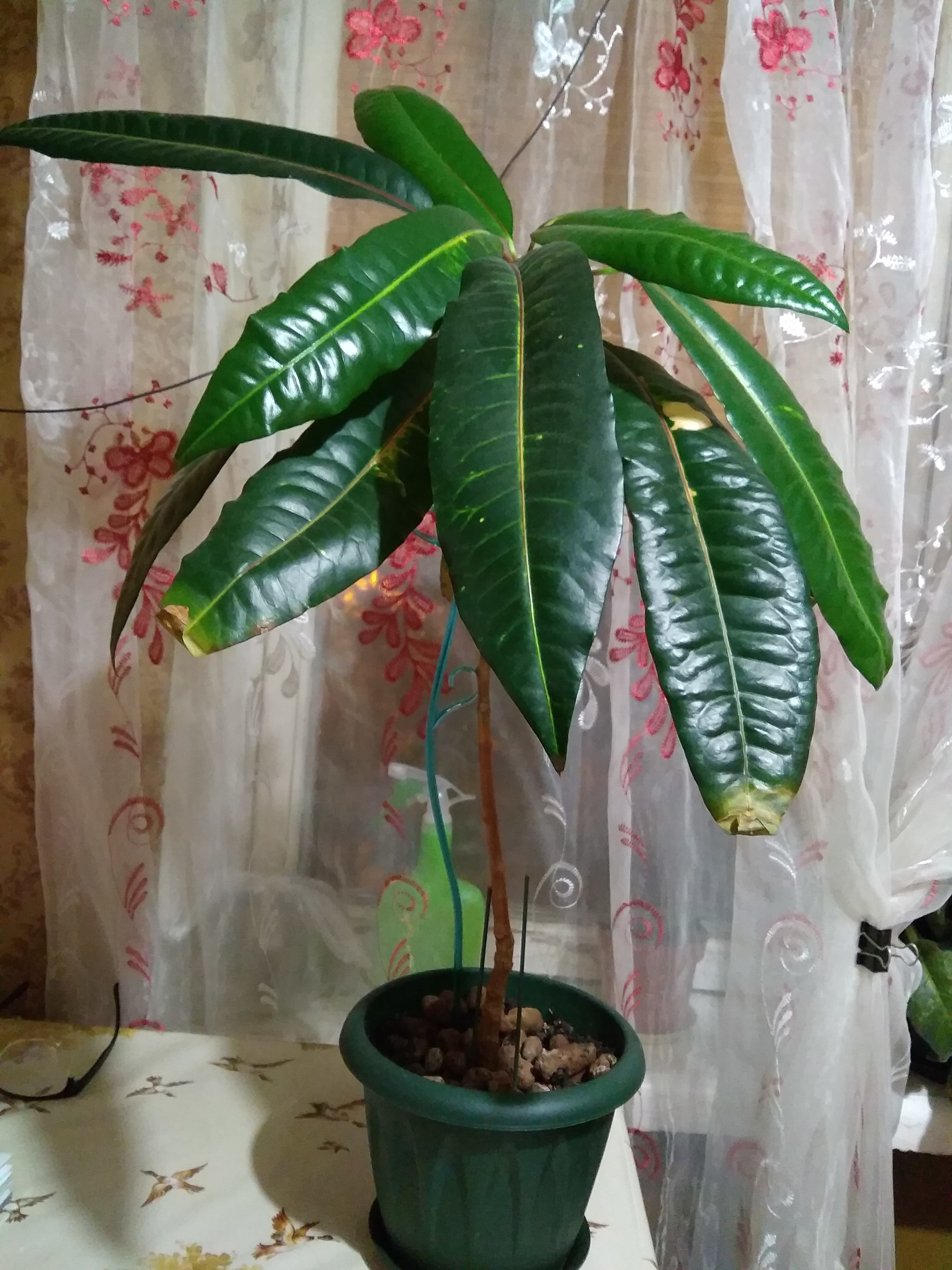 Похоже на кротон пестрый (кодиеум) — семейство молочайных, млечный сок должен быть.