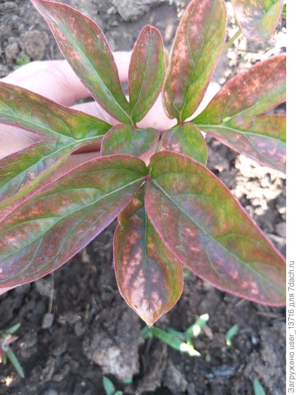 Есть также второй куст пиона, у него абсолютно чистые листочки, красивого зелёного цвета, но проблема в том, что он не растёт вовсе. Как поднялся на сантиметров 25-30, так и сидит.